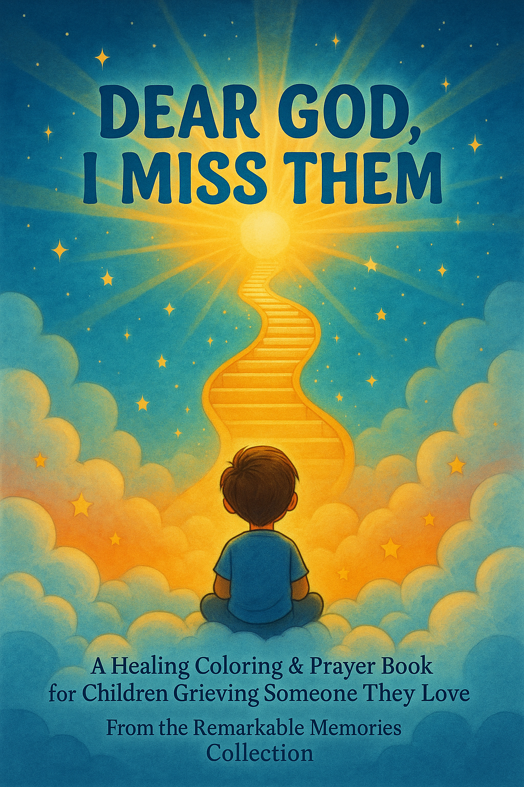 “Dear God, I Miss Them” is more than a coloring book — it’s a spiritual companion for a grieving child. Designed with gentle guidance and God’s love on every page, this personalized memorial keepsake helps your child process loss, honor memories, and feel held by hope.